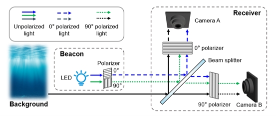 该成果由我校林驰副教授、林佳南(2022级硕士研究生)、熊杰教授(麻省大学、微软亚洲研究院)、王琪玮(2022级博士研究生)、王雷教授、吴国伟教授、樊鑫教授和罗钟铉教授共同完成。该论文设计了一个名为UWBeacon的创新系统,该系统基于可见光定位技术实现了厘米级精度的水下三维定位,可为水下机器人的精细化作业提供基础。UWBeacon由LED信标与相机接收器两部分组成,信标安装于水下基础设施上,发射可见光作为定位参考点,接收器安装于水下机器人上,拍摄包含信标的图像用于定位。该系统基于蓝色和绿色偏振光设计了新型的信标与接收器硬件,以提高系统的工作距离。此外,该系统设计了一种基于RGB图像差分的背景消除方法,该方法能够有效去除环境光干扰,提高信标检测的鲁棒性。最后,系统以信标作为参考点,并结合惯性导航数据计算接收器的三维位置和方向。大规模测试表明,该系统能够有效应对环境光干扰,并在10米的距离上实现了6厘米以内的定位误差和1.5度以内的定向误差。