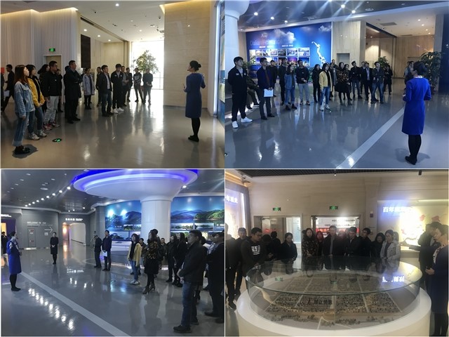 在中心讲解员的带领下,支部党员参观了中心共3层展示区,15个展厅。通过文字、照片、沙盘、实物及多媒体等多种展示方式,对我市的过去、现在和未来有了深刻、直观的了解。一层展区以“回顾城市历史,感悟大连文脉”为主题介绍了大连城市的历史沿革及发展历程;二层展区以“解读城市规划,引领大连未来”为主题展示了大连市“一轴两翼,一核一极七节点”为主的组团城市网络;三层以“关爱城市生态,彰显大连智慧”为主题介绍了大连得天独厚的生态特色以及结合高新科技构建智慧城市、低碳城市、海绵城市的发展构想。