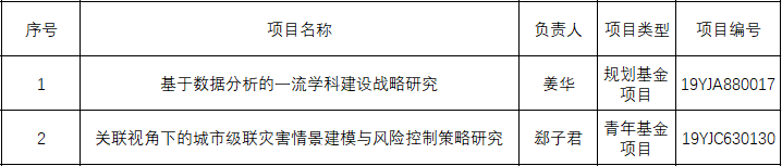 2019年度教育部人文社会科学研究项目获批两项,负责人为姜华老师和郄子君老师。