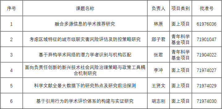 国家自然科学基金委员会于8月16日公布了2019年集中受理期申报项目的评审结果,在已公布的获批项目中,人文学部获批6项,其中面上项目4项、青年科学基金项目2项,获批直接经费243.5万元。