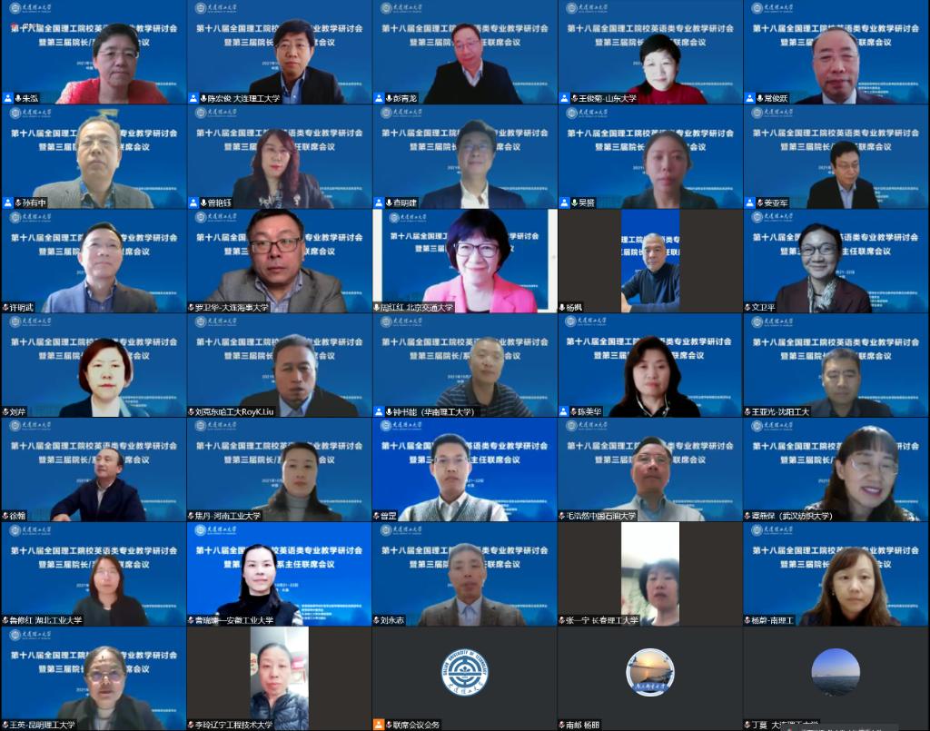 10月21日晚,全国理工院校英语类专业第三届院长/系主任联席会议在线上举行,18位来自全国各大高校的英语教学与研究专家、外语学院院长,围绕一流专业申报建设与评估、一流课程申报与建设及面向国际传播的翻译人才培养三个主题进行了深入广泛的交流与探讨。