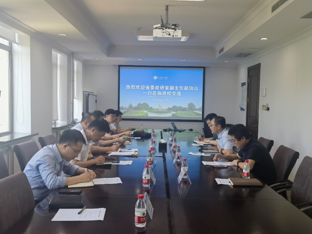6月15日,辽宁省委政研室副主任赵治山带队来校调研我校科技成果转化工作情况。我校技术研究开发院院长赵珺和相关同志出席座谈会。