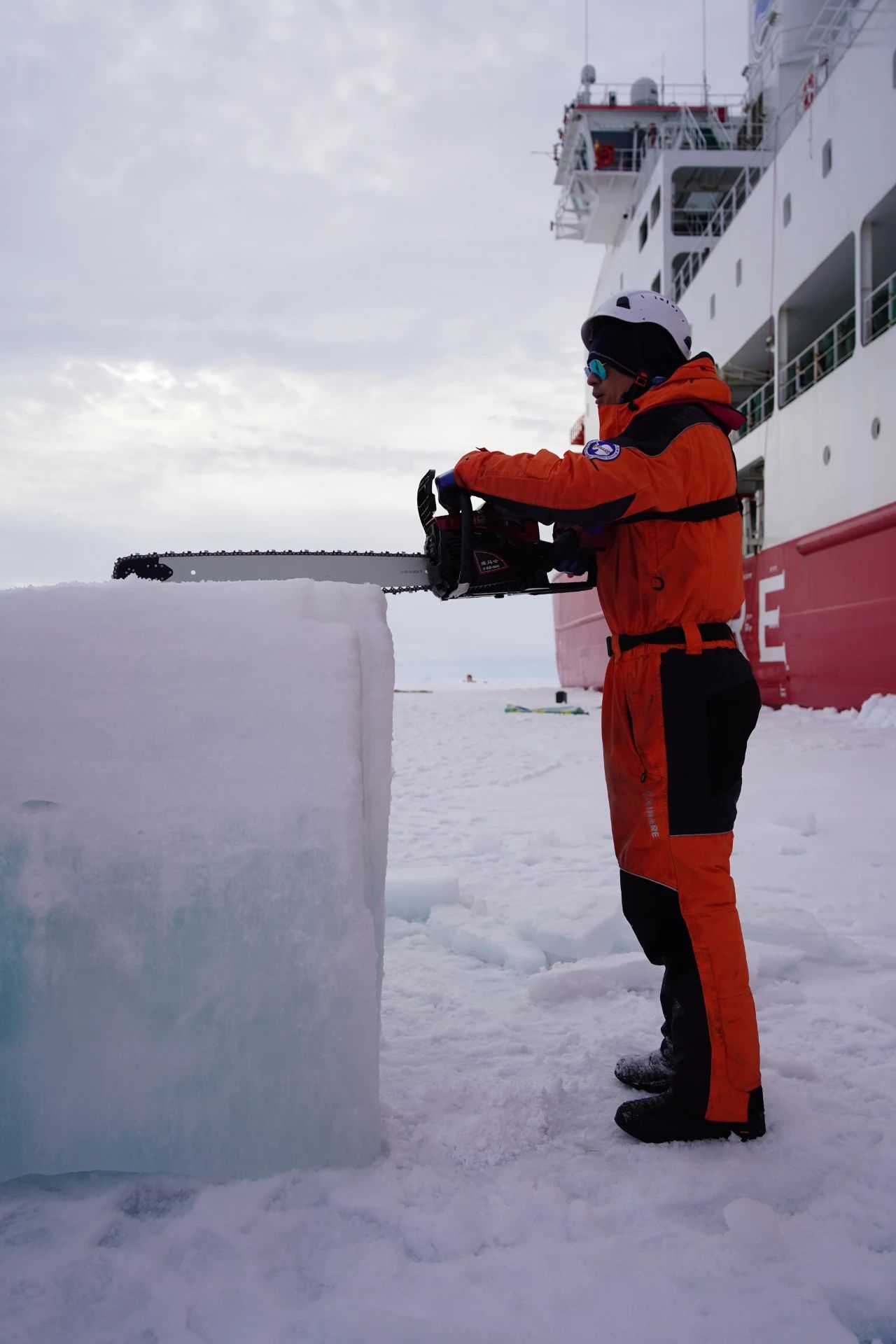 他主要参与走航海冰观测及海冰力学性质测试方面的工作,在47个大洋站位、6个短期冰站和1个长期冰站作业期间,完成了包括海冰力学性质现场测试及采集、走航海冰参数自动化观测、无人机观测等任务,共采集海冰冰坯试样0.52立方米、冰芯柱试样181柱,其中在北极点采集冰芯试样15柱,填补了我国海冰物理力学性质研究在该区域的数据空白。