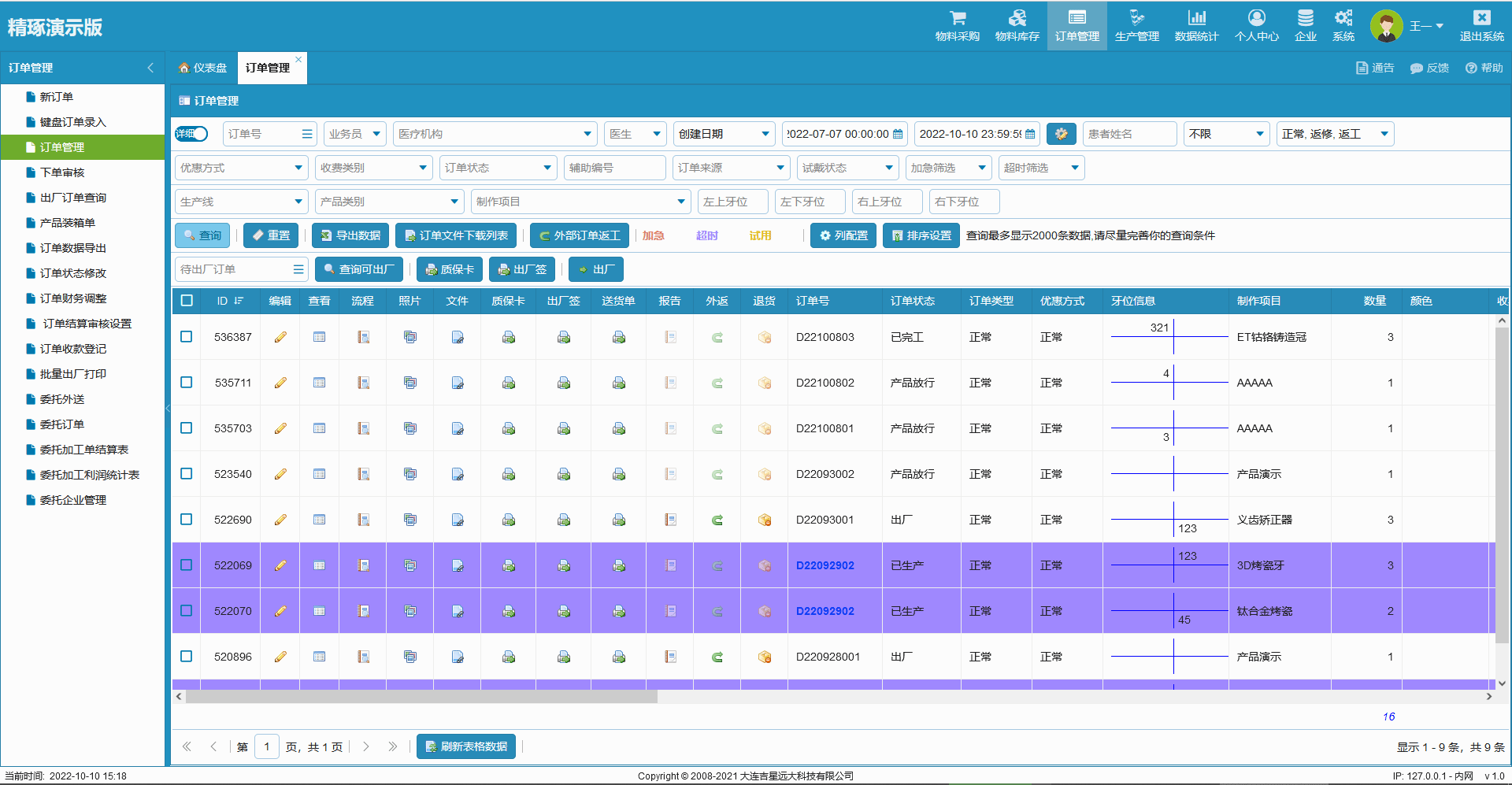 随后,科研人员深入企业运营中枢,实地考察义齿加工生产线数字化管理系统,并调取全国千余家客户的服务数据。通过分析订单处理时效、生产质量管控等核心指标,为后续算法优化提供精准数据支撑,推动科研成果快速转化落地。