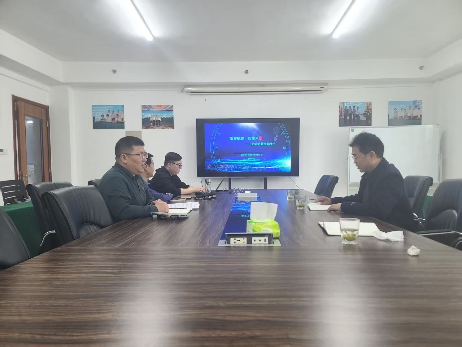 潍坊平安消防是山东地区消防维保领域的领军企业,其技术负责人介绍了该公司在全国消防市场和国际市场的占有率及行业面临的技术问题。我校科研团队重点展示了智慧运维和数字孪生领域最新研究成果和应用案例,包括超大建筑的环控自适应调控、火灾烟气在线辨识逃生引导、多维数字孪生平台的设备模型集成、以及多维数据驱动能源网络供需预测等关键技术和应用案例。双方围绕智慧消防目标下的监控平台智能化升级等行业难题展开深入探讨并达成初步共识。随后,我校科研人员现场观摩了潍坊平安消防的自动报警演练等科目。
